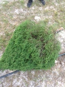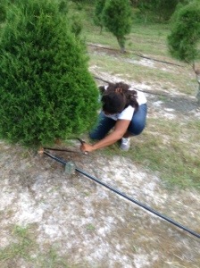 Since I’ve always purchased a tree from a commercial retailer I really didn’t know what to expect as far as size or the difference in how the Florida trees vary from other types of trees I was familiar with. There were alot of trees that were not tall enough to be cut down. They ask that you only select trees that are at least 5ft tall. While that left us with a smaller selection of eligible trees, it’s a good thing because that means there will be plenty of trees to choose from for years to come! Even though the trees were smaller than what I was used to seeing it was still magical to see the many rows of triangle-shaped trees perfectly in a line. After 20 minutes of walking around I found a tree that was the perfect shape, full, and tall enough to take.