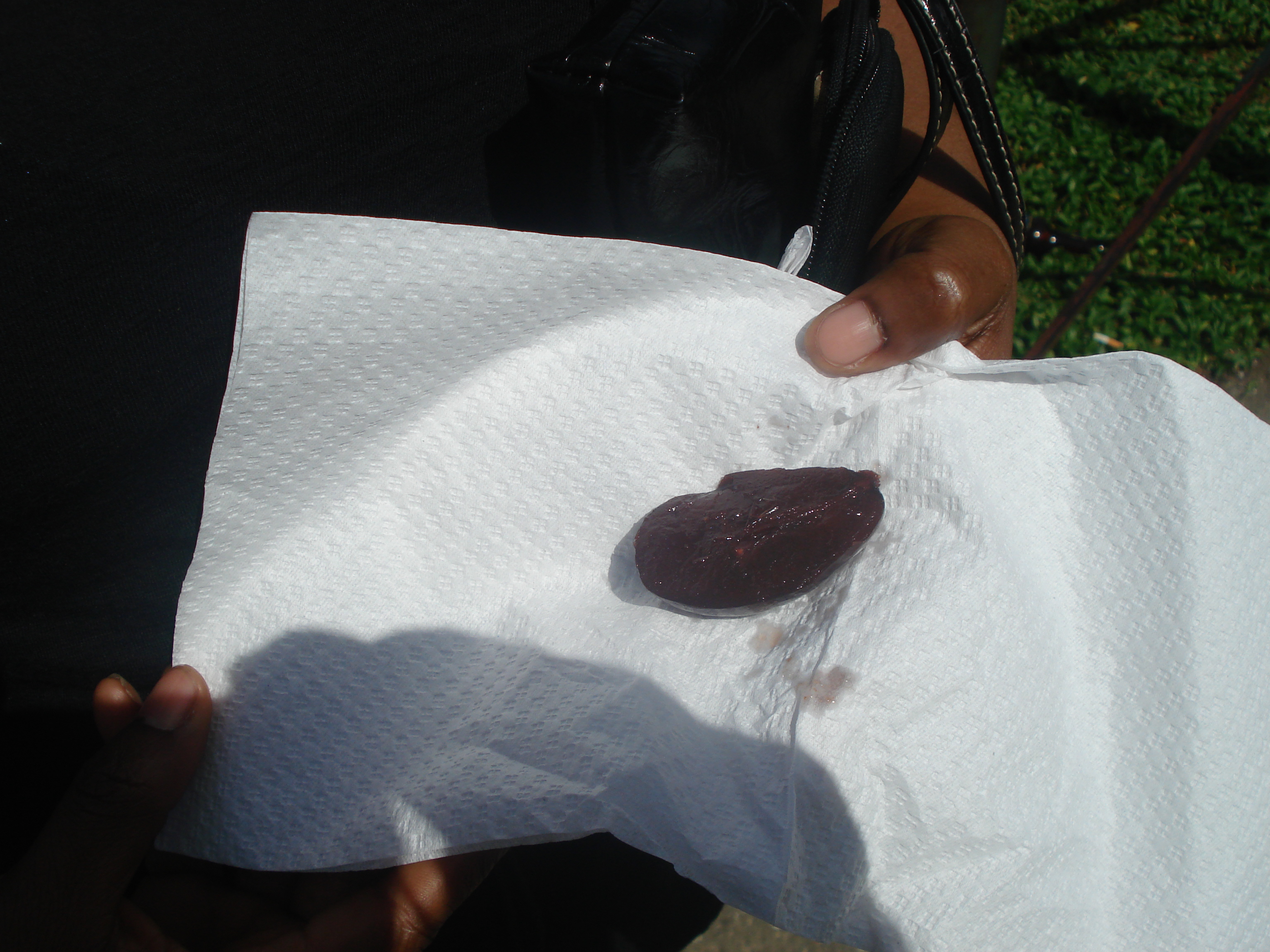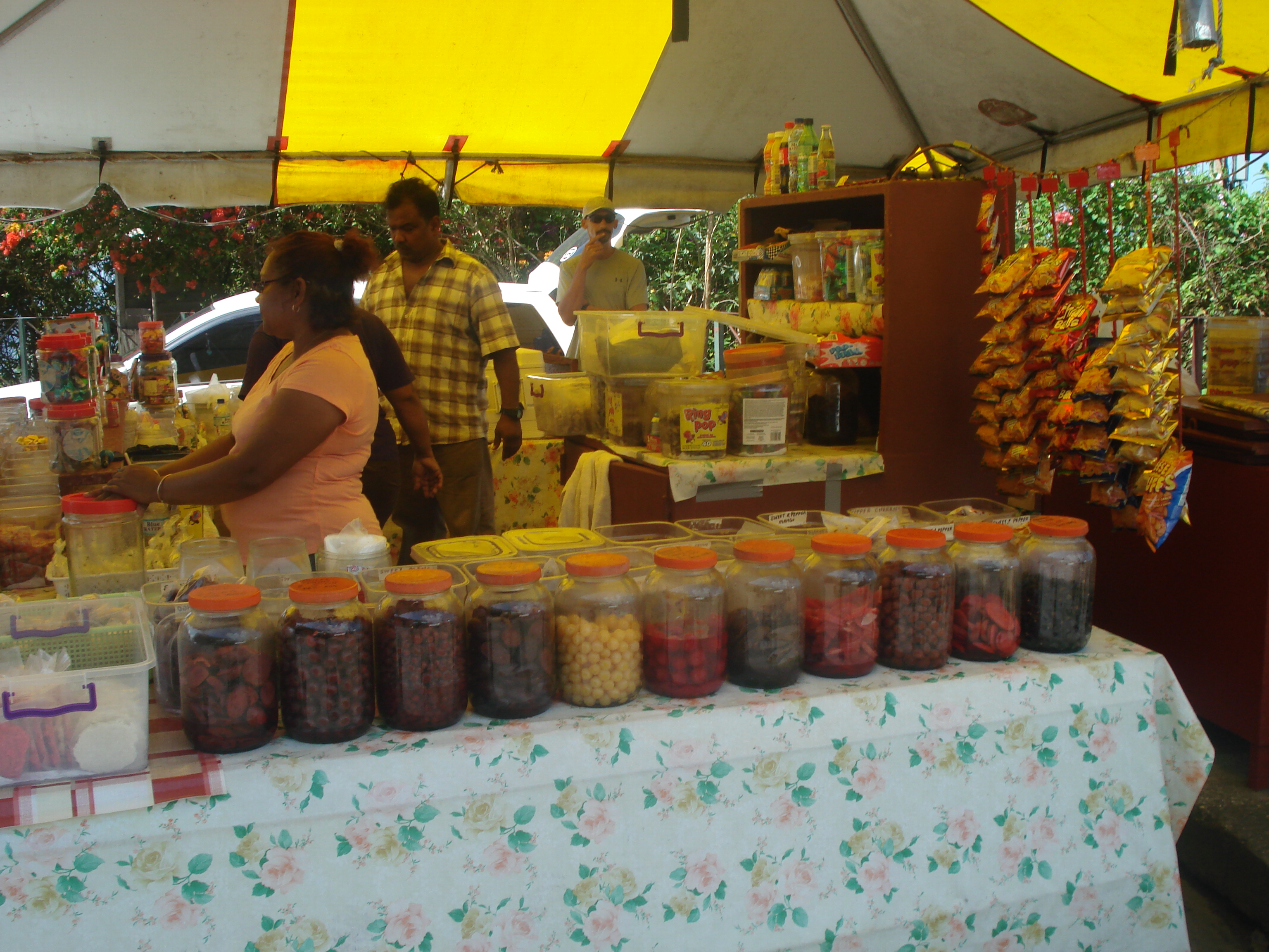 Doubles is a very common Trini street food. It’s bara (a fried flat bread) stuffed with channa (curried chick peas, spices, and tamarind). It’s not the most appetizing looking food, but man is it tasty. They are extremely messy but it’s a fun thing to try. You get the hang of the proper way to stand after your first one.