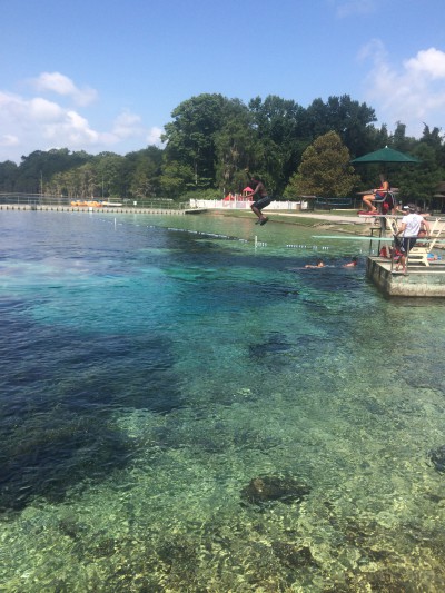 For the more adventurous, jumping from the diving board directly over the spring head is a must. My son jumped more times than I can count. I stood on the diving board. I looked down at the abyss and I admit….I chickened out. (**hangs head in shame**) I’m always saying go for it and try something new. I’ve jumped from much higher and into deeper water but the blue hole intimidated me for some reason. Now I have to return one day to redeem myself, but my son jumped about 20 times!